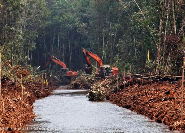 The race to clear land for cultivation, especially the burning of natural peat lands, contributes to Indonesia’s role as a significant emitter of greenhouse gases (GHG) worldwide. Many of the thousands of hectares of forest that have been burned to create palm plantations in Indonesia are on peat lands (73%; 26% in Malaysia), which, when destroyed and exposed, release massive amounts of carbon dioxide.
