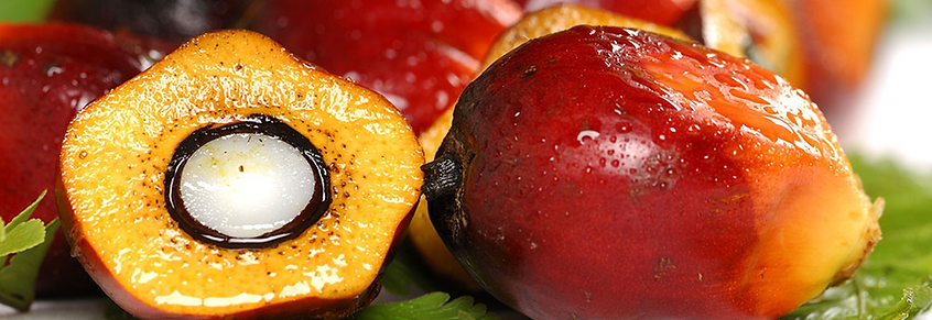 Above, palm fruit is a source of palm oil and palm kernel oil, each with unique properties. Palm oil, palm kernel oil, and their derivatives are used in a variety of products, including cosmetics, cleaning, personal care, biofuels, and processed food products. Some commonly seen derivatives are sodium lauryl sulfate, stearic acid, glycerin, and oleic acid.